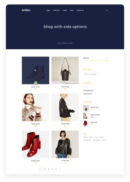 Arden offers you with fresh and vivid appearance. Your website will stand out with high flexibility in customization.
